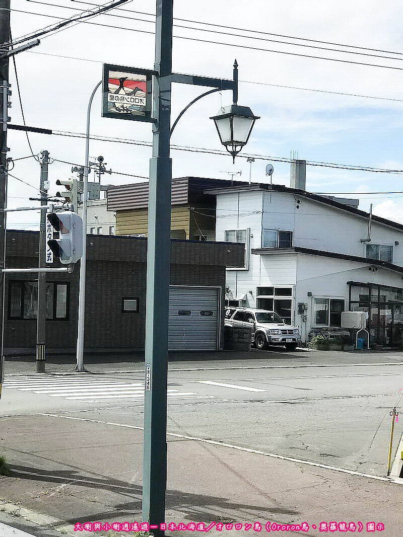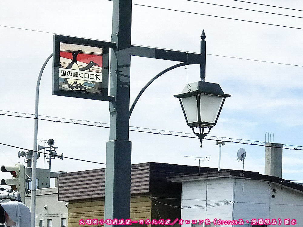 日本北海道-羽幌町/オロロン鳥(Ororon鳥、奧羅龍鳥)圖示經過一段路程,我們終於抵達目的地,在步行前往餐廳途中,發現前方路燈旁有個可愛的オロロン鳥標識,乍看之下以為是企鵝,經查詢相關資料才知誤認。
