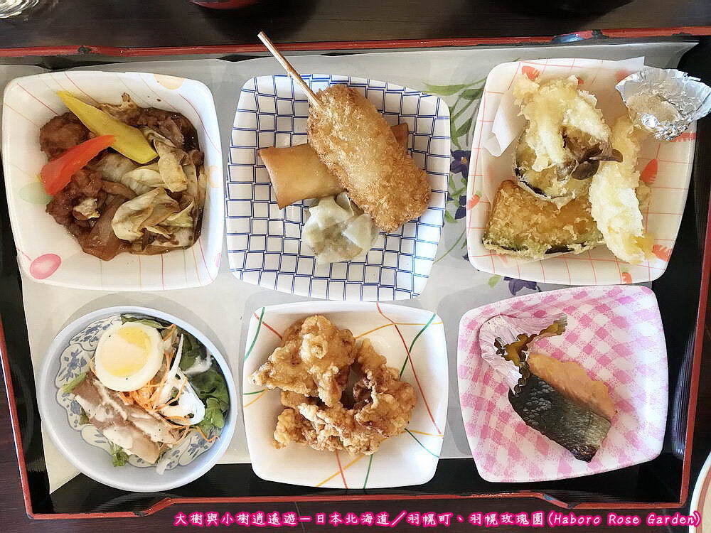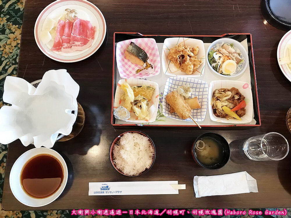 日本北海道-羽幌町/飯店內午餐定食(配菜)今天中午的菜色有以上這幾道,還有豬肉小火鍋,整個吃下來其實蠻撐的,因為炸物偏多,魚、肉類也不少,絕對不會餓著啦!