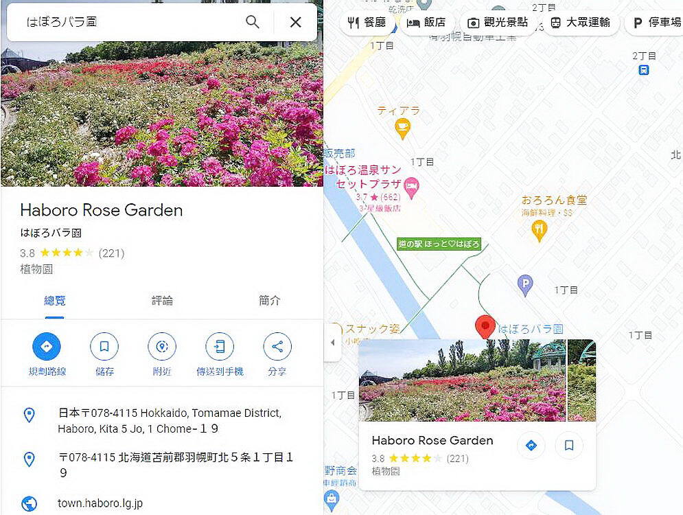 日本北海道-羽幌町/羽幌玫瑰園(Haboro Rose Garden)google地圖用餐時,導遊先生便不厭其煩地向大家預告,在餐廳旁邊有個漂亮的花園,用過餐後可以去逛逛喔! 小樹當時沒留意是什麼花園,事後整理遊記時特別交叉比對了google地圖,終於確認上圖的花園,正是羽幌町景點榜上有名的羽幌玫瑰園(Haboro Rose Garden)。