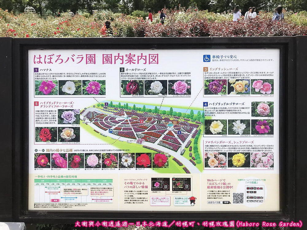 日本北海道-羽幌玫瑰園(Haboro Rose Garden)/園區地圖及花種介紹上圖是羽幌玫瑰園的園區地圖及各類花兒示意圖,光看地圖便覺得花團錦簇,彷彿美不勝收的視野景觀已在眼前開展呈現,園區以栽植玫瑰為主,以下便挑幾種花色的玫瑰與大家分享囉!