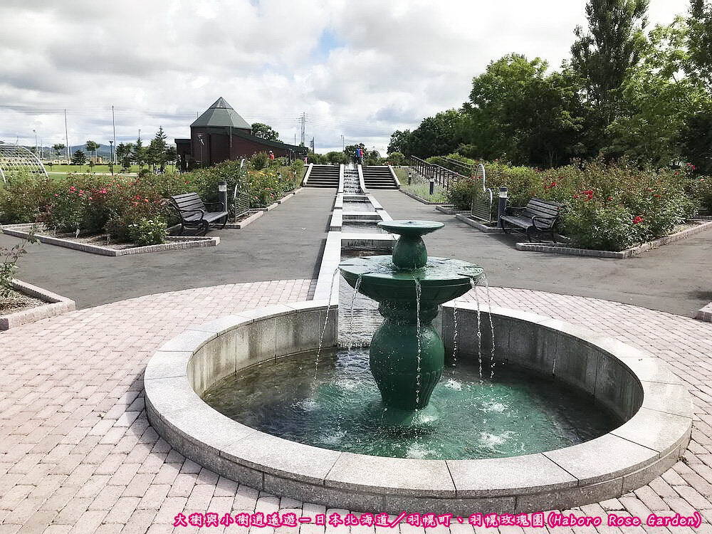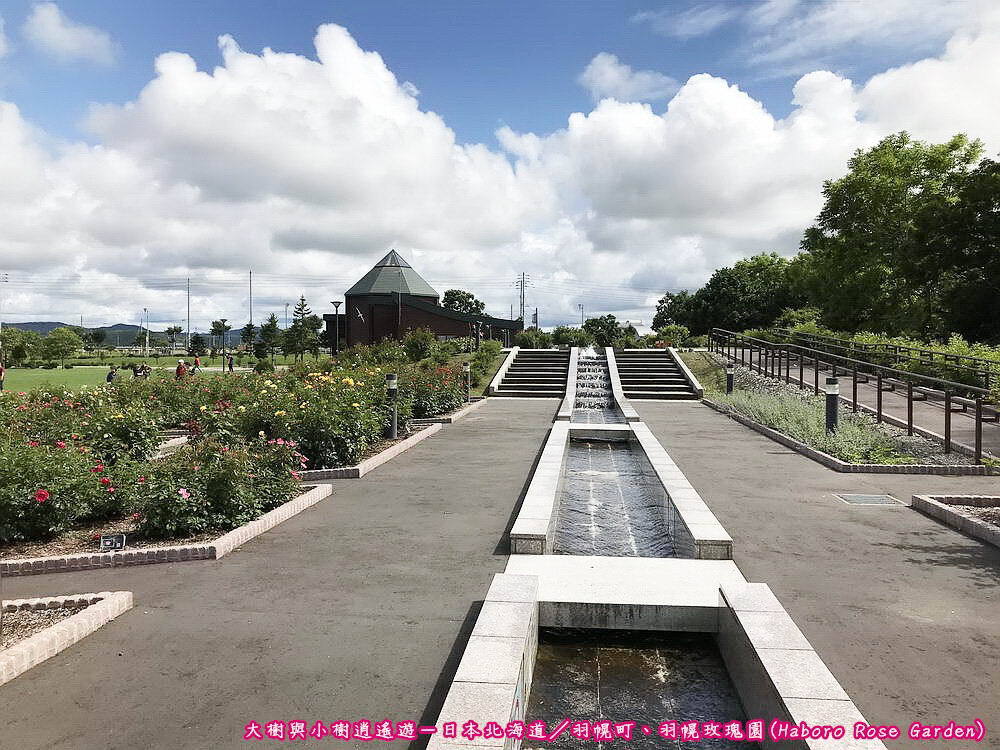 日本北海道-羽幌玫瑰園(Haboro Rose Garden)/噴水池循環水道經查詢相關開花情報,羽幌玫瑰園的玫瑰從6月下旬至7月中旬為第1次開花期,滿開期落在7月上旬至中旬,也就是說,7月算是最佳賞花期。