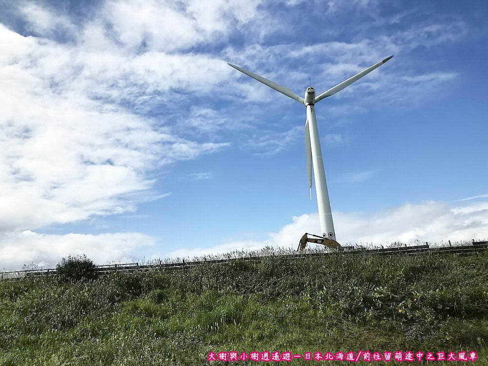 日本北海道-前往留萌途中/巨大風車在離開羽幌玫瑰園之後,途中我們看見了路邊的巨大風車,先前曾提過道北一帶強風陣陣,所以宗谷丘陵上架設了成排風車,蔚為奇觀,但小樹一直沒能親眼見識,終於在前往留萌的路上看見了。
