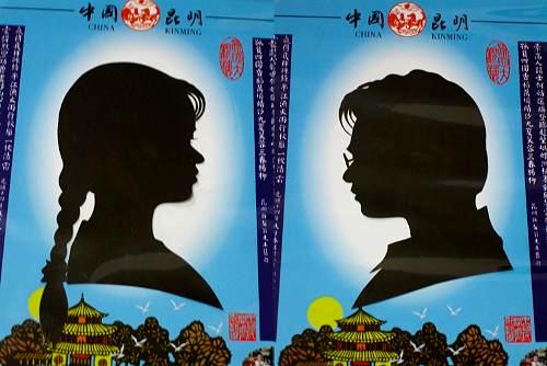 領隊以過來人的口吻教導大家,開始接觸普洱的遊客無不失血淪陷,說來中肯,像安慰也像訕笑。品味完雲南著名的生菌火鍋,好事上門,被臉型剪紙達人選中免費服務畫一張,不像不要錢,接著GG夫人也響應入畫,作一筆划算的交易,等於畫兩張只付半價,卻為老闆帶來接不完的生意。有圖有真相,生意為何會那麼好,請看照片便分曉。 |