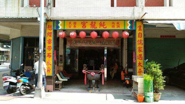 純龍宮隱身在水泥叢林,宮主翁炳男高齡八十四,精神奕奕,敘事條理分明。他說:「純龍宮為呂祖自行顯化而來,迄今已開宮45年(民國60年起)。源於宮主三十多歲,長年打坐,受神人點化,屢問不知仙師是誰,歷經磨難考驗後,降授「地理、破邪、修煉」三書,始告知是純陽祖師。」