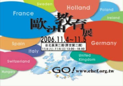 第五屆台北歐洲教育展 EHEF 時間:2006.11.04~11.05 地點:台北展演二館(原世貿二館) 台北市松廉路3號 網址:www.ehef.org.tw 高水準的教育品質,優渥的獎學金,多元的文化、語言與生活環境,使得台灣有愈來愈多學生開始眺望歐洲作為留學的另一種可能。二○○六年歐洲國家將聯合在台北世貿二館舉辦第五屆歐洲教育展,提供歐洲相關的留學、簽證、旅遊、獎學金資訊,面對面諮詢服務,更有機會獲得精美獎品與免費機票,歡迎大家共襄盛舉。 |