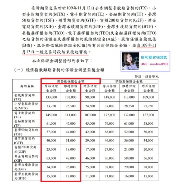 台灣期交所保證金調整了唷~~ 109年11月13日(五) 一般交易時段結束後調整