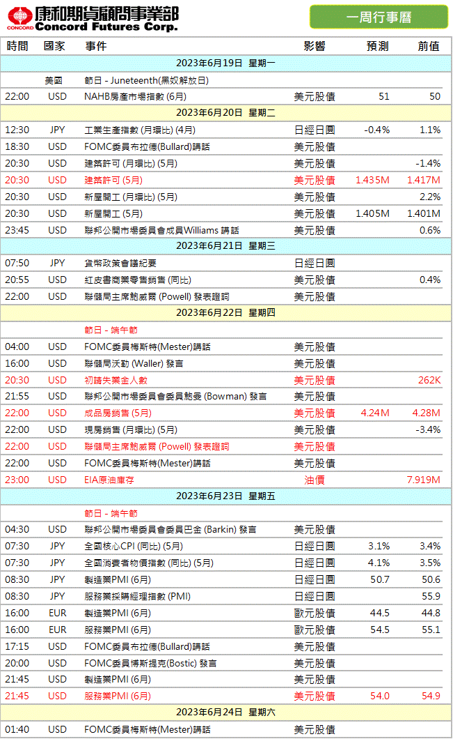 重要數據行事曆2023/6/19