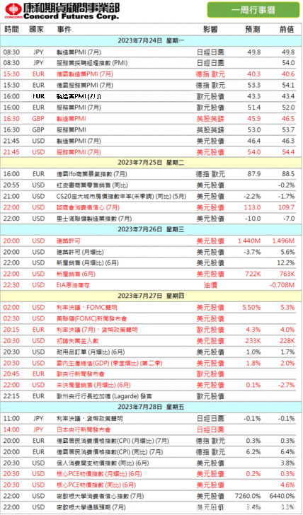 康和期貨-重要數據行事曆2023/07/24