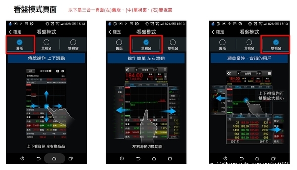 • 擁有三種不同看盤模式供使用者依照個人喜好選擇