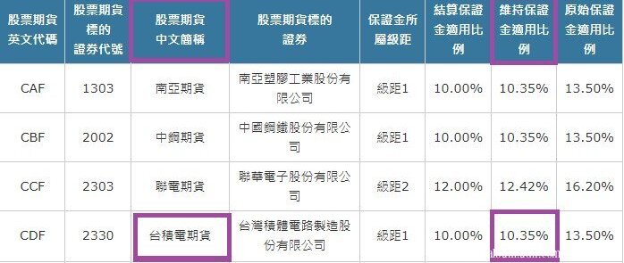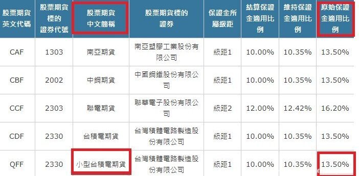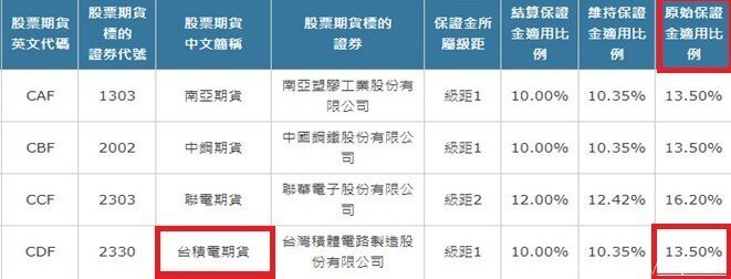 以上資料僅供參考,保證金所屬級距及適用比例以期交所公告為準