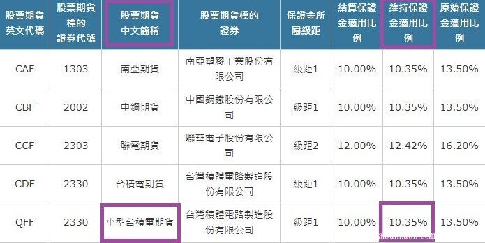小型股票期貨價格×13.5=小型股期原始保證金,小型股票期貨價格×10.35=小型股票期貨維持保證金