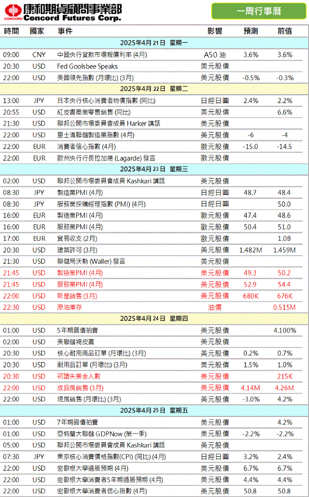 資料來源:https://www.concordfutures.com.tw/ConcordFutures/ (註:依現況資訊不定時更新資料,仍以各交易所公告為準) ----------------------------------------------