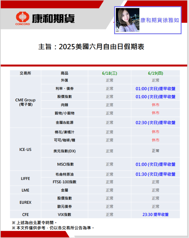 2025美國六月自由日假期表 6/19(四):部分商品提早收盤、休市