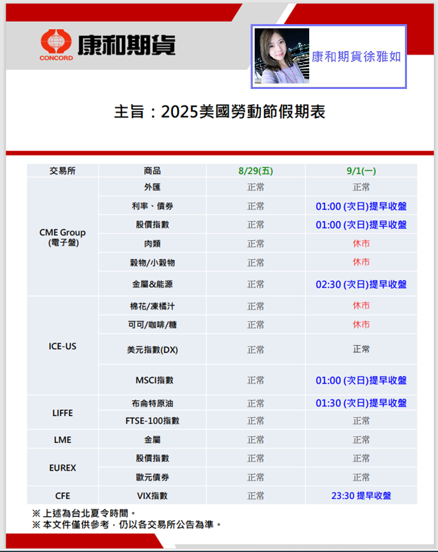 2025美國勞動節假期表 9/1(一):部分商品休市、提早收盤