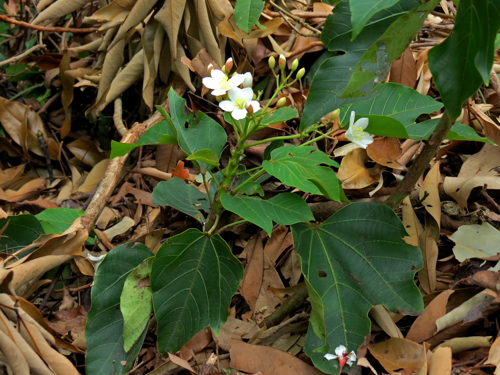 這棵小小油桐很特別, 不到30公分高, 竟也等不及的開花了