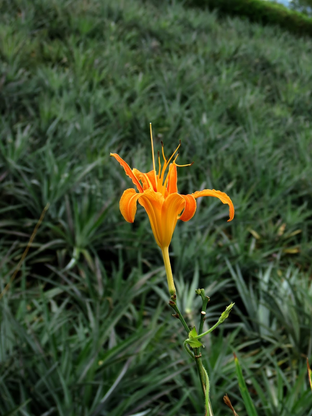 回家查了資料, 南投縣府林務保育科表示,近年來氣候異常,不僅雨量豐旱不均,日夜溫差也很大,都可能造成花序錯亂。 也有可能 因颱風, 油桐花的葉子大量被掃落,植物生存受到威脅,為求傳宗接代才拚命開花,形成「美麗的錯誤」 三義鄉曾姓生態解說員指出,其實油桐一年有三次的花期,四、五月間開得最茂盛,也就是俗稱「五月雪」的花期。另外,九月和十二月都是花期,只是花開的並不多、花期也不長,因而大多數人並未注意。 所以最大的原因, 我不曾用心, 大自然有它的步調, 是我少見多怪罷了。 回程的路上, 轉進了不曾走過的小路... 又是個驚喜, 遇見了三朵金針花, 哇~~鮮豔的顏色, 美麗的花形, 生長在鳯梨園旁, 顯得一支獨秀的傲人身影... 細緻的花瓣, 閃閃發亮, 一整個感覺朝氣蓬蓬, 讓此時運動到氣喘噓噓的我, 精神也為之一振, 果然忘憂草能量十足, 讓人把煩惱拋在腦後呢? 太久沒和阿kan博感情, 今天用起來超不順, 總對不到焦, 總算在 Ending 的金針花上, 有好些些, 但是, 但是...都無損於今天美麗的好心情...................................... |