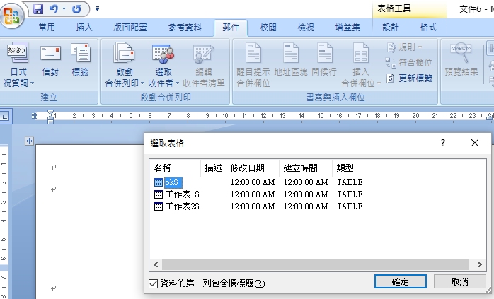 2. 進入標籤設定 3. 使用現有清單 4. 選取所需表格 5. 插入合併欄位 6. 調整欄位版面 7. 更新標籤, 就可將變數帶作資料欄位中 8. 此時, 點擊預覽結果, 沒問題的話, 就可以列印收工囉!! |