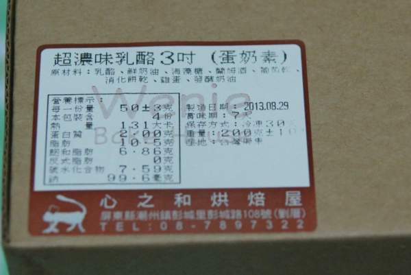 團購美食,位於潮州的心之和烘培坊,去吃過的人一定還想要再吃吧,就在老婆同事號召下,我們也團購了兩塊回來吃,一塊是超濃的,一塊是蔓越莓起司,一塊150元,但真的不錯吃喔! 包裝還滿精美的,盒子上有熊印,印著你所購買的口味, 旁邊則有標示原物料跟熱量還有營養成分,冷凍可保存30天,但最好是七天內把它吃掉,吃完一整塊熱量大概是500大卡,吃一小塊126大卡,其實還好, 這是超濃的成份其實熱量是差不多的,我還是比較喜歡吃超濃的口感的,它所用的糖是標榜海藻糖喔!這樣對身體比較沒負擔吧! 打開盒子後,有放了一張告示卡,宣示不含化學香精,採頂級乳酪及澳洲的發酵奶油喔!!難怪每一口都那麼濃郁,裡面還放了一包保冷劑,因為要-18度的保存,還有不要退冰吃喔~要-5度品嘗!退冰後都軟掉了,口感會很差! 三吋的小蛋糕用小麻繩捆著,還真是可愛阿!準備打開! 這是蔓越莓乳酪蛋糕,看起來就很可口了!口水都留下來了!! 切開看它的內餡看是否有偷工減料吧!其實內餡還滿多料的,蔓越莓乾清晰可見!!咬一口後,整個乳酪與蔓越莓的香味在嘴巴爆開,好好吃阿!! 這是超濃的起司乳酪,是用葡萄乾當作上面的擺飾! 切開後,因為標榜是超濃的,所以葡萄乾內餡就不多,但那超濃的起司乳酪真是讓人流連忘返,配上一杯黑咖啡真是種享受,甜而不膩,扎實的口感,好想再團購一次~~ http://www.weniehouse.com/order.php 官網團購即可 住址是 屏東縣潮州鎮彭城里(路)108號 08-7897322 營業時間:11:00~20:00 下午茶供應時間:下午13:00~19:00 每周一公休 |