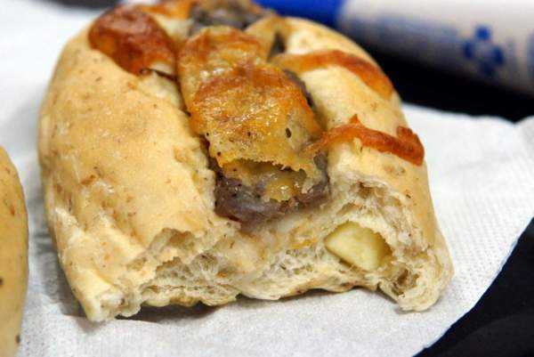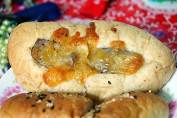 這是招牌玉荷包口味的香腸麵包,咬一口真的有玉荷包的香氣跑出來,沒像加香精那樣的重,但卻感覺得到那玉荷包的口感跟麵包在一起,真的很特別,好吃,