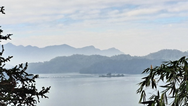 週末清晨,日月潭的空氣清新而帶點朦朧感,美得像水墨畫。我們將車停在文武廟旁的停車場,由後山公園路啟程。