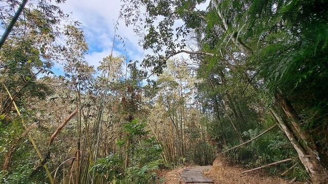 這是一條非常「誠實」的步道,迎面而來的,是毫不留情的連續上坡階梯,我們沿著階梯一路向上,直到看見私人土地的圍籬,便意味著出口近在眼前。抵達出口端後,帶著滿足的汗水與微微喘息,再原路折返回岔路口,替這段新路線畫下句點。