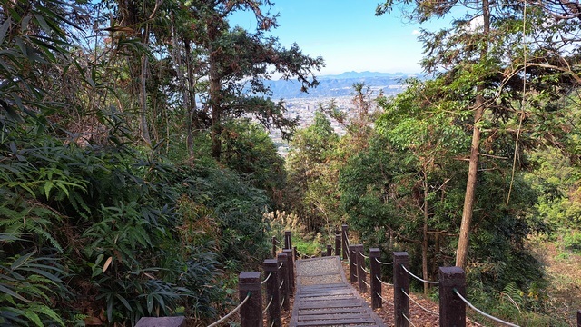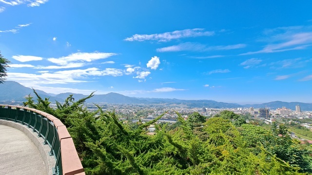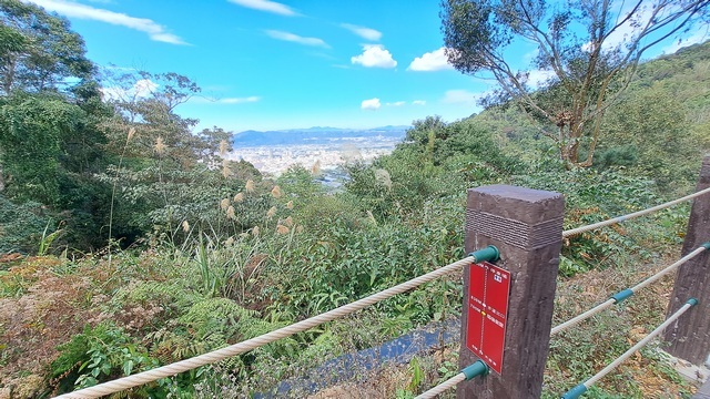 既然來了,自然不能錯過新的步道。隨後驅車前往 2025 年 1 月底剛完工的「鰲頭山步道」,只需導航至「天旨宮」即可輕鬆抵達,廟前廣場停車十分便利。這裡視野極佳,能將埔里鎮的風光一覽無遺。
