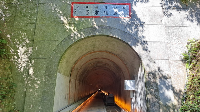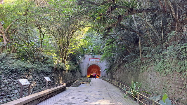 回到百吉林蔭步道,再走不久就到了慈湖的南管制口,雖然是入口,但是大門緊閉無法進入,但沿著緩坡向下,很快就回到了出發點:舊百吉隧道口。