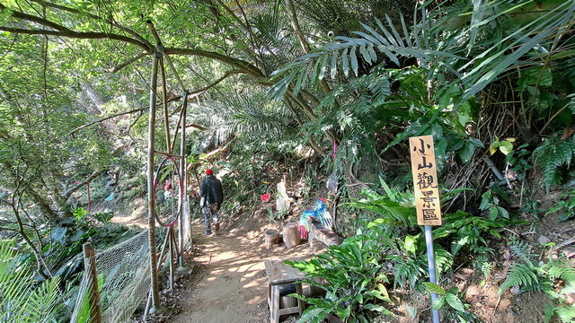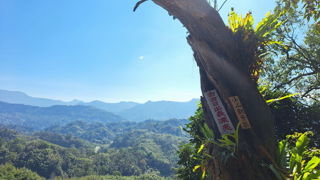 出了隧道,穿過馬路,接上百吉林蔭步道。這條通往慈湖的坦途大道遊客如織,多是日常健行的民眾。我們從第一條岔路轉進溪洲山古道,途經一個小山觀景區,這是賞日點,許多民眾把不要的家具堆置於此,賞日的民眾可以坐在太師椅上翹著二郎腿看日出。