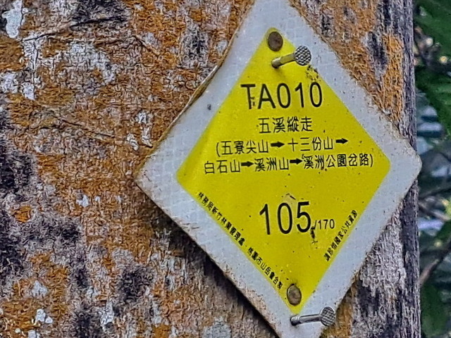 反正今天時間多的是,從路旁走上白石山古道。本以為很快就可以抵達白石山,但是一峰接著一峰,又令人迷惘了。到達一處制高點,看看大溪平原,覺得白石山風景也不過如此,不想走了,於是折返。也有幾個從五寮尖過來的登山客,讓我回想起,以前來過白石山,只是從另一個方向過來。所以今天也算是補足當年未走的另一個方向。翻翻照片,路標顯示應該要走一小時才會到白石山,不過今天只走半個多小時,而且沿路沒路標,可能是登山客不會選擇這樣走。