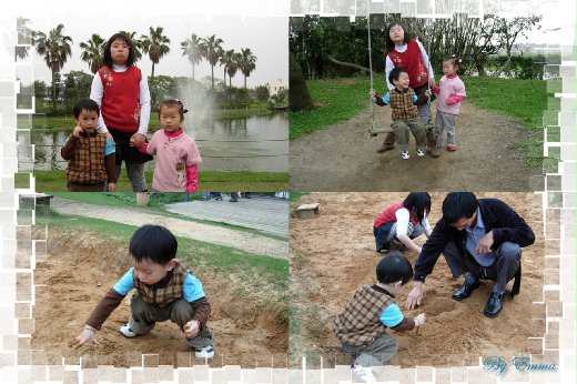 不知道從什麼時候開始,老爸和叔叔、姑姑們約定:每年大家都要輪流做東,吃吃飯、聊聊天,聯絡感情。 這回,輪到老爸做東啦!^o^ 而老爸已經退休多年,便由我們三姊弟均攤,宴請各位親朋好友。 礙於人數等種種原因,最後決定在綠風草原進行聚餐。 這家餐廳,我們去年也去過一次,小朋友可以在草地上快樂的奔跑、遊戲,大人們也可以試試赤腳走在草地上,釋放平日多餘的靜電,對身體很有益處。 算算,除了已經過世的伯伯、姑姑之外,這次參與聚會的有叔叔夫妻、四位姑姑、三位姑丈和他們的孩子... 加上我們一家人,聚餐的人數大約20多人...也算是很龐大的聚會囉!^^" 菜色方面,因為我吃素,倒沒特別注意。^^" 不過,重點是:大家可以藉著聚餐,聯絡彼此的感情,不至於因為分隔各地、久未見面,而漸行漸遠...... 我們從傍晚,呆到晚上,看到了不一樣的綠風... 晚上的綠風,也別有一番寧靜的味道喔! 呵...大人們忙著聯絡感情,小人們也沒有閒著喔! 到處跑跑跳跳、玩玩沙,也同樣度過一個愉快的下午時光。