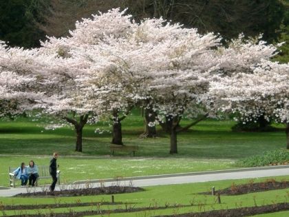 儘管連續陰雨數週,家附近地花還是應景的開了不少,尤其是一樹樹的櫻花,李花,枝頭怒放,彷彿硬要給灰撲撲的天氣增添一些顏色。散步看花,瞧著就納悶到底哪個是櫻花?哪個是李花?怎麼分別?櫻花又有多少常見的種類?上網找。 櫻花顏色很多,李花大抵就是白的。櫻花樹樹皮上會有橫紋,李樹則無。至於常見的櫻花,那可是孩子沒有娘,說來話頭長。抄一些分享一下: 世界上種植櫻花以日本最盛,800個品種的櫻花、日本就佔去一半。日本櫻花分為兩大類五個系︰山櫻類(野生)有山櫻和彼岸櫻二系,花多為單瓣;裡櫻類有裡櫻、染井吉野(吉野)櫻、早櫻三個系,花多為重瓣,如日本的“菊櫻花”的花瓣竟有300多片。 櫻花常見的主要栽培品種有︰ 櫻花時節,日本舉國歡騰。電視、廣播、報紙各大媒體紛紛報道櫻花開放的消息。受氣溫的影響,櫻花由溫暖 的日本列島南端向北方依次開放,因此形成一條由南向北推進的"櫻前線"。櫻花愛好者們趁此機會追趕"櫻前線"北上。 日本的古語中,有一個詞語用來形容春天,稱作"櫻時"。可見在人們心目中,櫻花即代表了春天。賞櫻本身是一種對春天的由衷讚美。有人說,櫻花開得短暫,開花時卻傾盡了全部美麗,正象一種人生態度。這也許是日 本人喜愛它,並以它為國花的原因之一吧。"欲問大和魂,朝陽底下看山櫻" 賞櫻活動成為大眾娛樂是江戶時代(1600年~1868年)以後的事。以前是只有王孫貴族才能享受的優雅之事。 聽來頗風雅有趣,也想效顰,想找附近的賞櫻地圖,計畫今年春天按圖賞櫻。巧了竟有溫哥華櫻花節Vancouver Cherry Blossom Festival,而且還邀請大眾一起以賞櫻為題創作俳句,真是酸的有趣。有興趣可上網參與。 圖為此地最常見的染井吉野(吉野)櫻,關山櫻,極樂寺櫻。