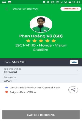 一般來說摩托車的價格會是汽車的一半,若遇到尖峰時段價格會另外再加乘。選完車輛後,點選下方綠色Book按鈕,就可以叫車了,會看到下面這畫面: 如果Book之後發現有輸入錯誤怎麼辦?沒關係,Grab很貼心的設計了五秒之內可以取消的功能,只要點選下方Cancel就可以回到上一個畫面。如果資訊正確的話,五秒之後Grab就會開始幫你配對司機: 如果看到下面這個畫面就代表找到司機了! 通常司機會貼心的透過打電話,或是傳訊息的方式跟你確認地址,不過有些司機不會講英文的,建議傳訊息比較好以免發生溝通上的問題。地圖上會顯示司機現在的位置以及大約的抵達時間。 過程中可以隨時點司機的大頭貼檢查本次行程資訊: 一般的結帳方式是等司機載到目的地之後,再拿現金給司機就可以了,要注意的是身上要多準備一些小鈔,因為有些司機可能會不找零。 以上就是Saigon Link Journey西貢人客2018年最新的Grab教學,我們會持續分享更多在越南聰明旅遊的小撇步喔! 下載Grab:Appstore, Google Play |