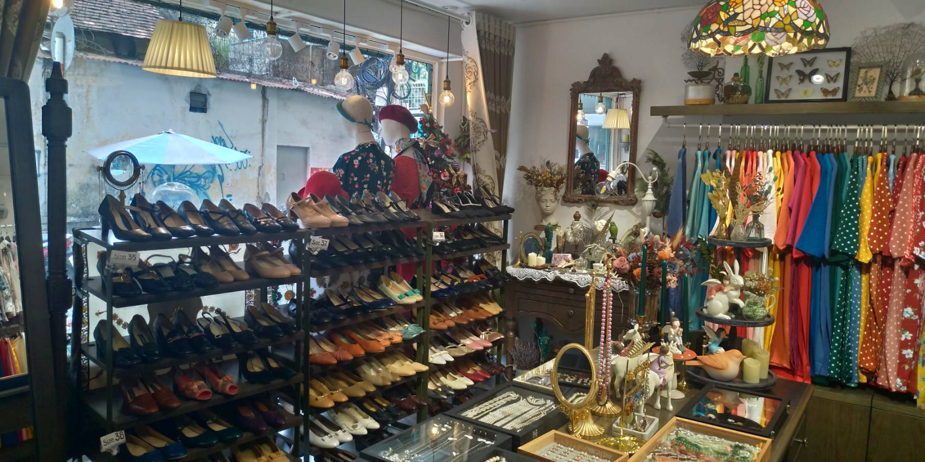 這家奧黛的質料很好、很輕薄、又透氣,正好適合炎熱的胡志明市價位的部分落在450K左右,帶一件奧帶上衣再選一件褲子,很剛好,高貴不貴的價錢,真的讓我很滿意啊 還有還有,店裡還擺了許多二手鞋和精緻的飾品,旁邊的櫃子也有包包和帽子可以搭配,讓你從頭買到腳,一次完成!
