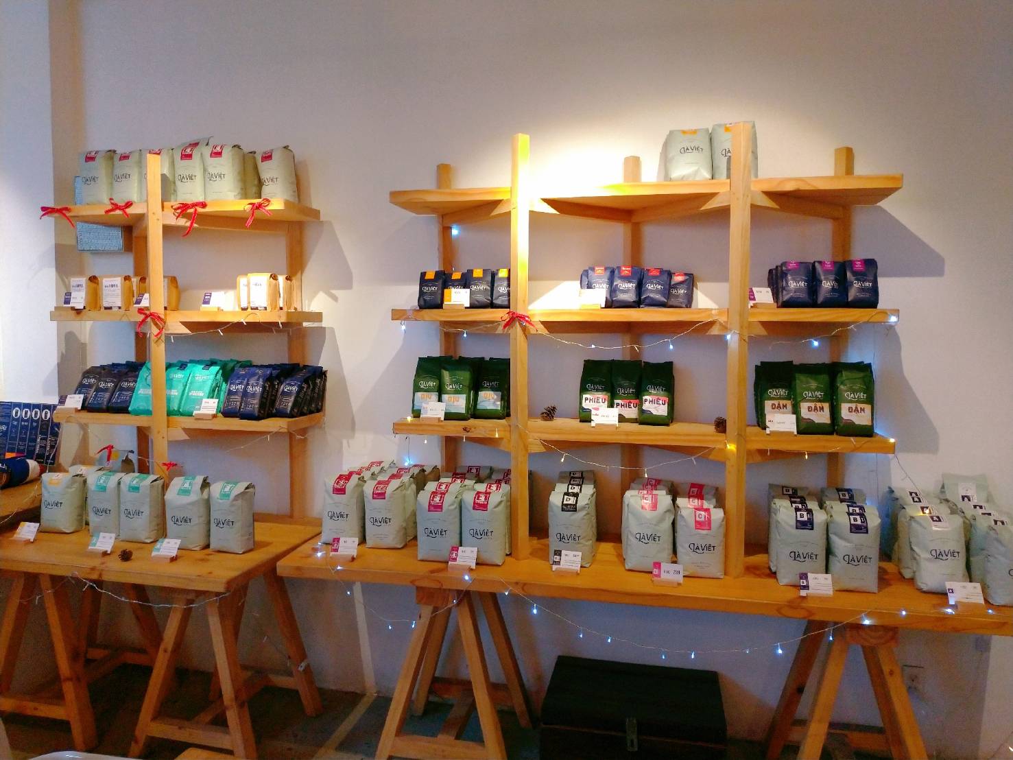 店裡面還有陳列他們家的咖啡豆及周邊商品(官網商店也買得到喔!),我只能說真心佩服這家店的老闆,目前在胡志明已經有三家分店囉 。 一郡 三郡
