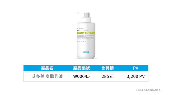 第一次使用就被它的天然柑橘味給吸引了, 柔柔滑滑的, 水水油油的, 很好吸收, 洗完澡後擦在身上, 手上, 睡覺時聞著一陣陣的天然果香味飄來, 不知不覺就睡著了! 😪好療癒喔! 原來 艾多美身體乳不惜成本的使用~ 天然的蘋果水和柑橘精油、 8種草本萃取成分, 製作而成的清爽柔滑身體乳液, 改善粗糙乾燥的皮膚, 帶給我們嬰兒般的嫩滑肌膚!👶 🔴產品介紹 天然草本和精油製作而成的~ 清爽柔滑身體乳液 👉加強保濕角質化肌膚 👉清甜精油蘊含隱隱香氣 👉柔嫩不粗糙,清爽觸感 自然淡淡香氣, 給我們嬰兒皮膚般嫩滑, 保濕滋潤度好,全天保濕, 不油膩,吸收快, 一年四季皆宜, 天然植萃護膚品。 🔴產品特色 🌿8種草本萃取物 含8種純淨天然草本植物成分,薰衣草、迷迭香、甘菊、茴香、魚腥草、羅勒、馬齒莧,藥蜀葵 👉幫助提升肌膚對環境傷害的保護力 👉舒緩及調理肌膚 👉加強保濕角質化的肌膚 👉給予肌膚活力, 維持肌膚彈力 🍊天然萃取柑橘精華油 選用純淨地區的柑橘, 萃取出柑橘精華油 👉改善肌膚問題, 緩和肌膚 👉柑橘的清甜香味: 香氛效果, 心情愉悅 🍎香甜蘋果水 👉純淨的香蘋果水, 提供肌膚多種營養成分 👉滋潤粗糙皮膚, 清爽不黏膩 🔴使用方式: 取適量身體乳,輕輕塗在身體上並加以按摩,沐浴後使用效果最佳。雙手及腳後跟加強使用, 效果也很好喔!😍 也可以在貼上 艾多美精油貼布之前, 薄薄的先塗身體乳在皮膚上, 可以幫助有些人減緩長時間貼精油貼布時的不適喔! 如果你是會員, 請直接在官網購買, 如果你還不是會員, 請跟小鶴連絡! Line ID: sandihsu33