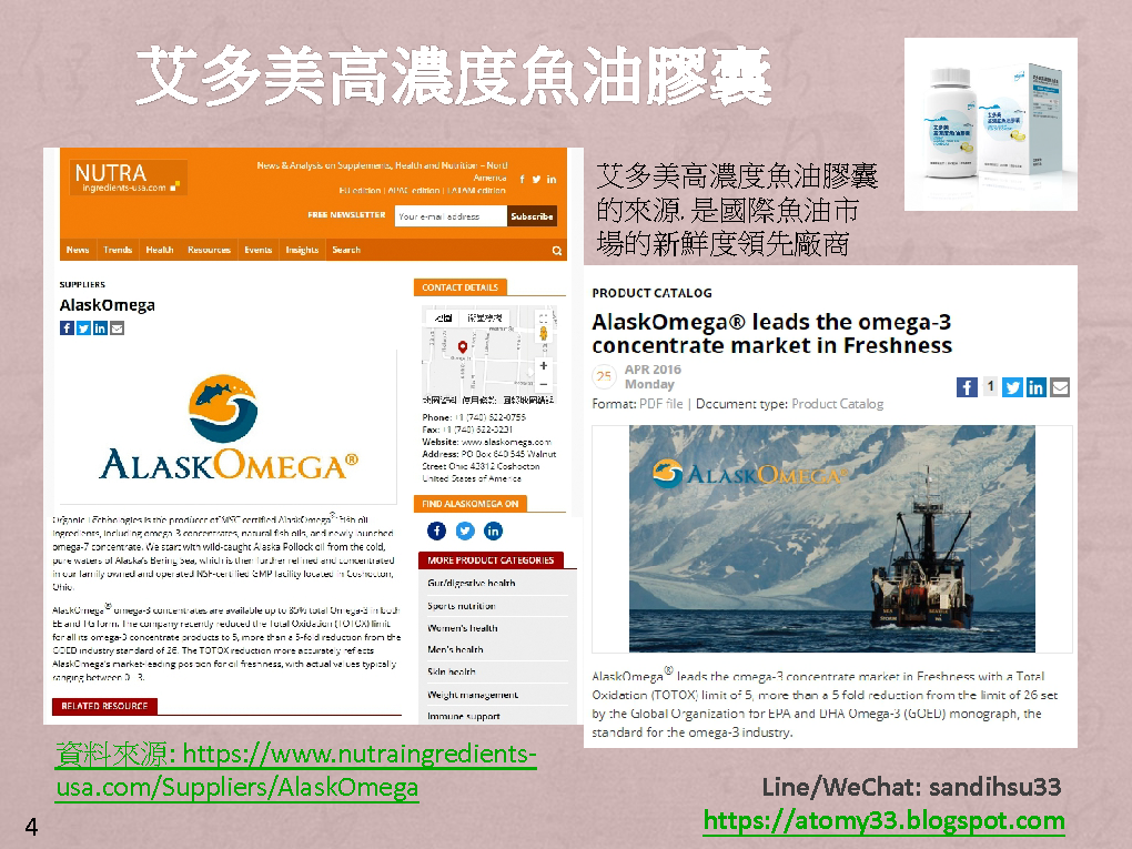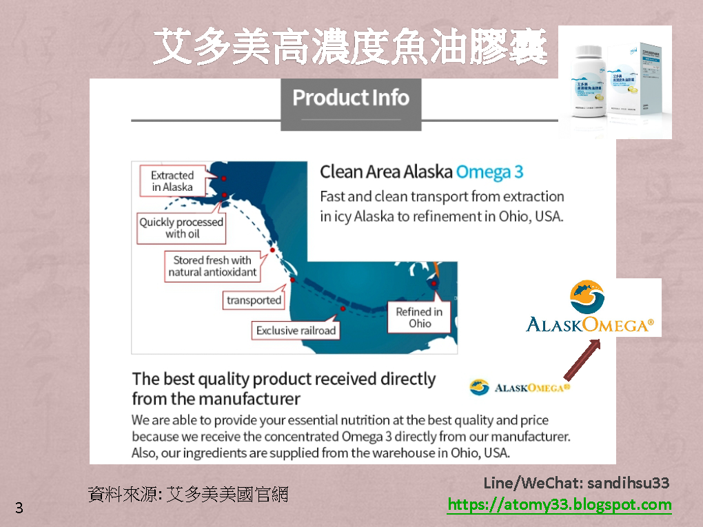 艾多美高濃度魚油膠囊原料的來源是直接來自於國際魚油市場的新鮮度領先廠商的 "AlaskOmega"位於俄亥俄州的工廠… (資料來源參考艾多美美國官網)