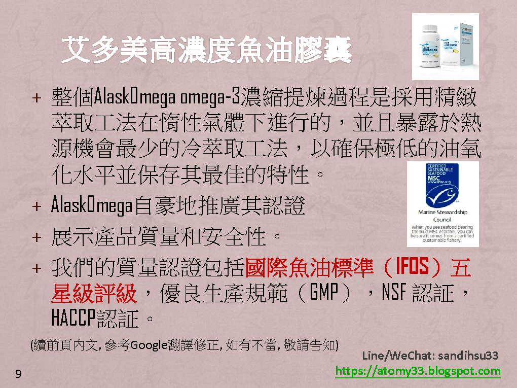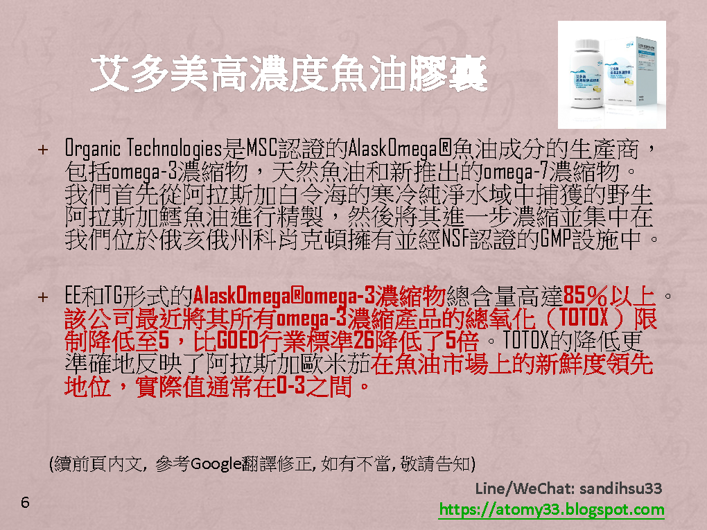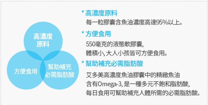 艾多美 高濃度魚油膠囊的原料來源和品質採用 - 國際魚油市場的新鮮度領先廠商 "AlaskOmega", 他們的產品通過了全球最嚴格、最高標準的檢驗IFOS-International Fish Oil Standards 最高的評價 - 5顆星, 不但魚油的來源讓消費者安心, 並且艾多美又以一般市價不到1/3的價格, 提供給艾多美的會員, 每瓶180顆只要 825元, 一天2顆, 一顆只要4.6元, 一天不到10元的價格, 可以吃3個月, 再一次証明艾多美的絕對品質, 絕對價格, 是真正要給消費者口袋没負担, 能夠長期的, 持續的使用, 才能讓身體健健康康的啊!