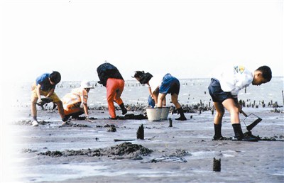 小時候,這整個溼地布滿了招潮蟹,遠遠就可以看到牠們頭上頂著一把大剪刀,橫著互相追逐,口中吐著泡沫在陽光反射下閃閃發光,這裡就像是螃蟹的運動場,牠們也餵養著村民和瘦巴巴的我。