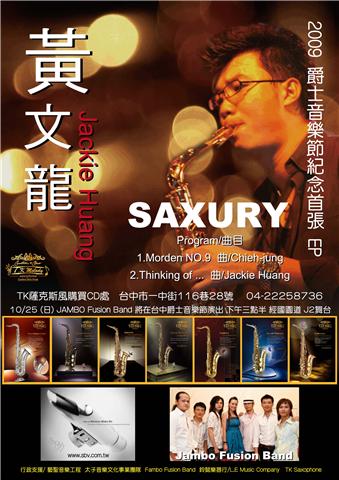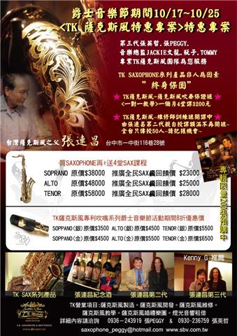 tK saxophone爵士音樂節現場與大家見面摟~現場開放薩克斯風體驗喔!!要上課的朋友也歡迎現場報名喔!!數量有限~~只有200片喔!!歡迎預購喔!!0936-243919張PEGGY