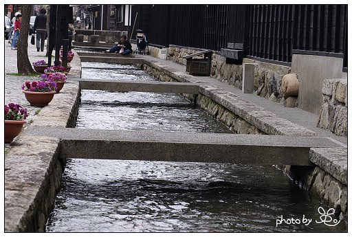 就看到古川有名的鯉魚圳, 還有塗得白白的白藏壁
