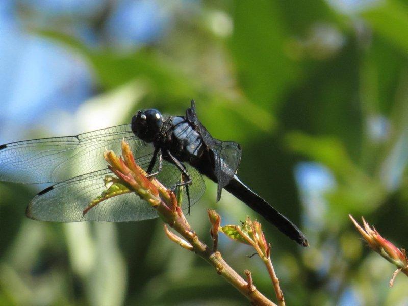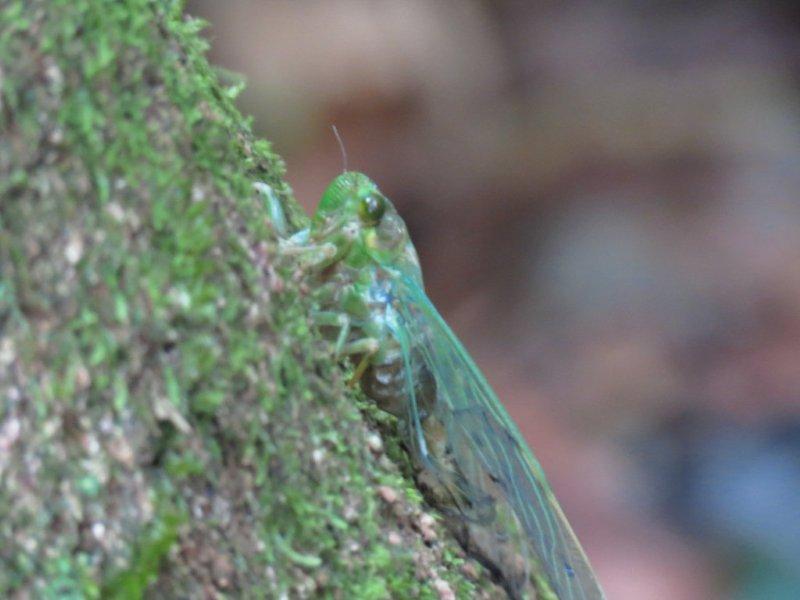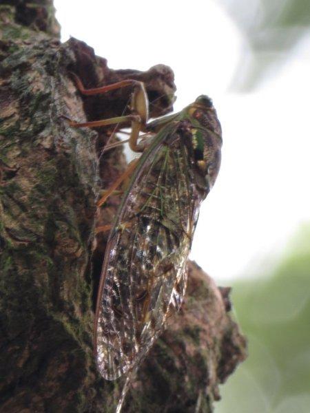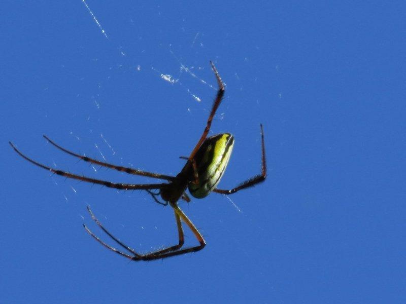 步道上蟬聲嘹亮聲不斷,聽到了高亢的蟬聲,引起找尋蟬跡興緻。邊走邊四處看看,僅看到了漆黑蜻蜓和藍天上的蜘蛛。