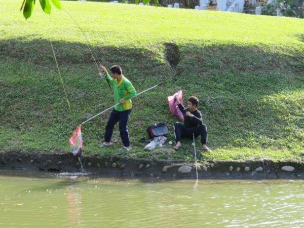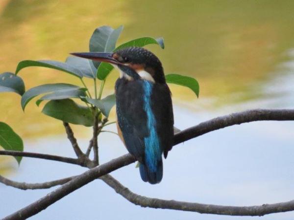 湖邊亦有不少釣客,遠離人群才能釣到大魚 我們沿著湖邊步道走上,湖上有急飛的兩隻翠鳥,原以為此行只能遠望其飛姿,好在湖上有鴨,它成為我們追逐的model後,卻看它沉於湖水內,才知它是小鷿鷈。 運氣真好,終看到翠鳥停歇處,它停於樹幹上轉動其頭,飛走後又飛來,圓了我試機願了。 途中的紅葉金花、雞屎樹、白波紋小灰蝶&小豆娘 |