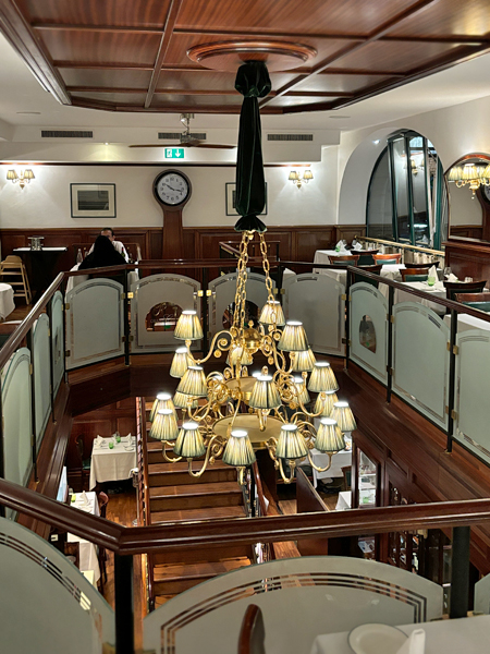 店內挑高天井之水晶吊燈。既然訂位樓上就沒下去,據說樓下有不少銅牌誌記來過的明星常客,還包括 Rolling Stones(滾石樂團)