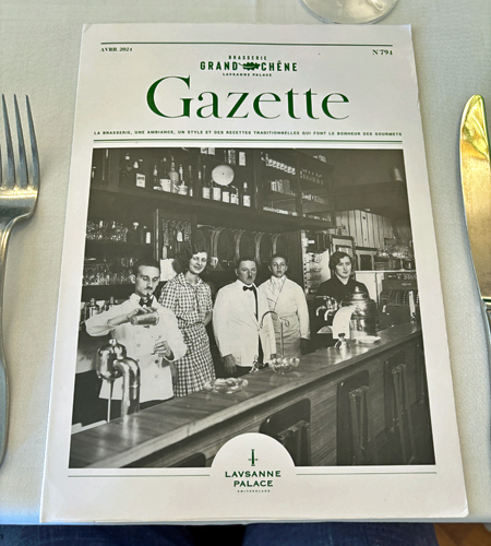 續上一篇 來到洛桑正式的第一餐,本就想在住宿的酒店享用,歷史悠久的 Lausanne Palace Hotel 內選擇豐富,除了入住時歇腳的《Le Bar 1915》,還有日式與秘魯風融合(想起了 NOBU)創意菜《Matcha Picchu》、米其林二星法菜《La Table du Lausanne Palace》等等,但個人最有興趣的卻是相對傳統、簡單的《La Brasserie du Grand Chêne》(直譯「大橡樹小館」好了) 以往旅行前還會興沖沖「做功課」、預訂名店,近年已有些「星星、Fine dining 疲乏」、旅途中也懶得正襟危坐三、四個小時吃啥 Tasting Menu。既然這一餐打算吃法國菜,Bistro、Brasserie 正合我意