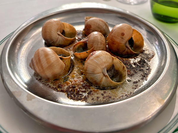 六位落座十人長桌,稍晚還有幾位世侄的同學要過來加入,咱們先點菜開動;既是傳統巴黎風小館,自然少不了鍾愛的經典菜色大蒜奶油蝸牛(Escargots du Mont-dOr au beurre dail en coquille),熱融乳酪加上大蒜奶油香氣撲鼻,好的開始!