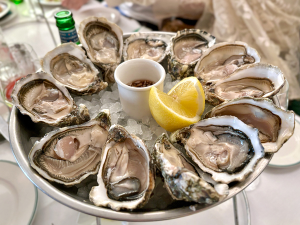 稍早在酒吧嚐了此處的生蠔拼盤,甚有水準。人多當然要來大盤的,Gillardeau No.3、Fine de Claire No.3各六只,實在不錯,忙不迭追加一大盤