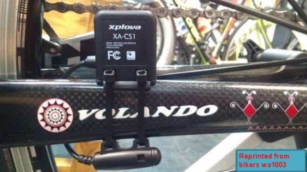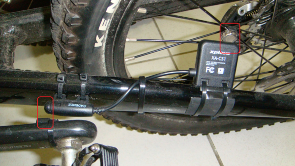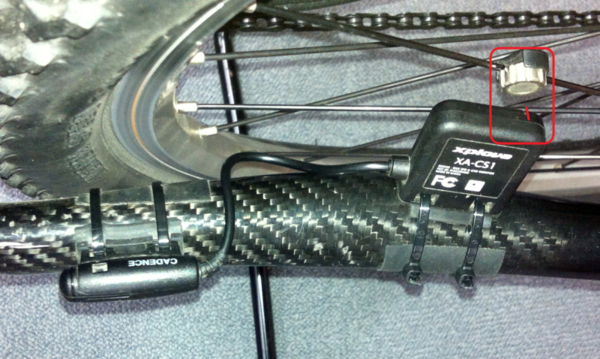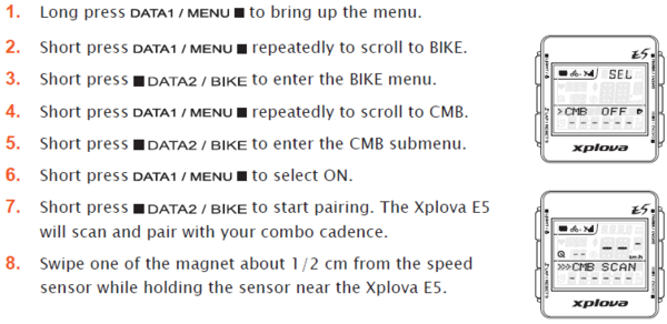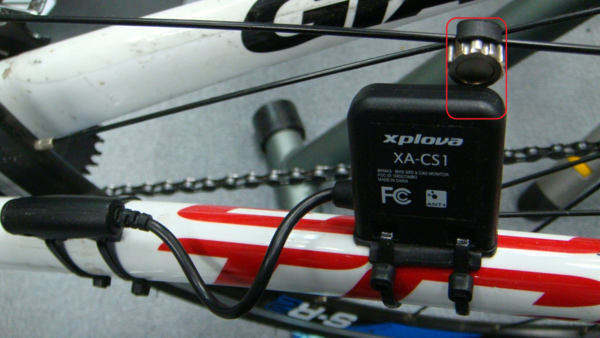 Xplova Combo Cadence Sensor --------------------------------------------------------------------------------------------------- The combo cadence (includes the cadence sensor and a speed sensor) attaches to the chain stay of your bike to help you track your speed and cadence accurately