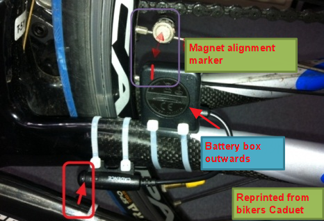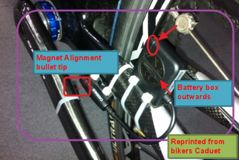 4) Attach the magnet to the left crank. Do not fully tighten