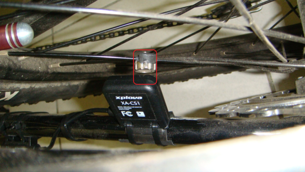 3)Attach the magnet to a spoke. Do not fully tighten