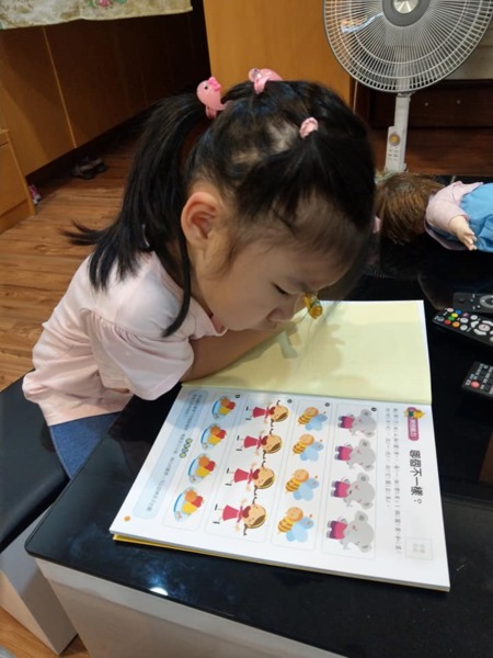 怎麼說呢?一來因為孩子還不識字,媽媽理所當然得解釋每道題目;再者是這些看似簡單的題目,對四歲多的孩子來說可能是聞所未聞、難如登天。
